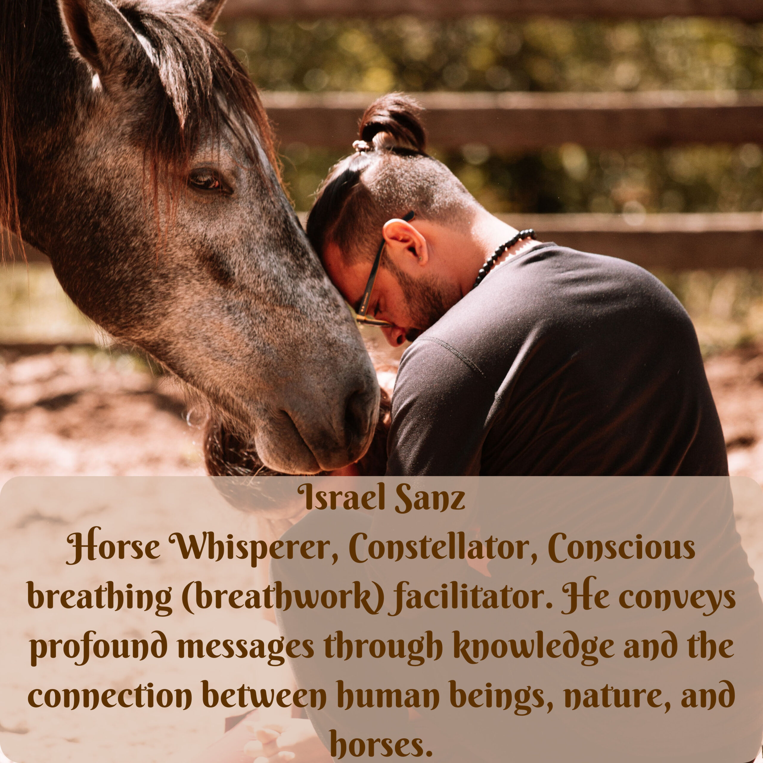 Israel Sanz: Domador, Terapeuta, Constelador y Amante de los Caballos consigue traernos profundos mensajes a través del conocimiento y el vínculo entre el hombre y el caballo.